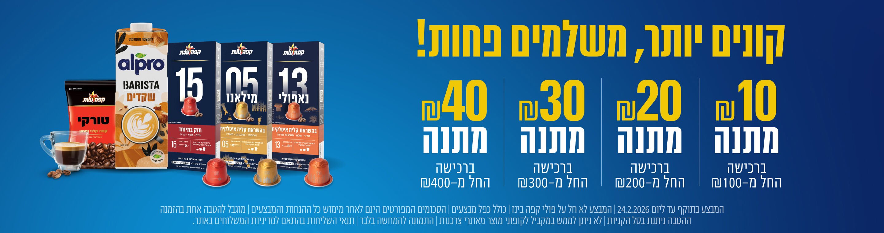 הניוזלטר שלנו רותח ממבצעים בלעדיים והשקות של סוגי קפה חדשים וטעימים. הצטרפו מהר, לפני שיגלוש :)