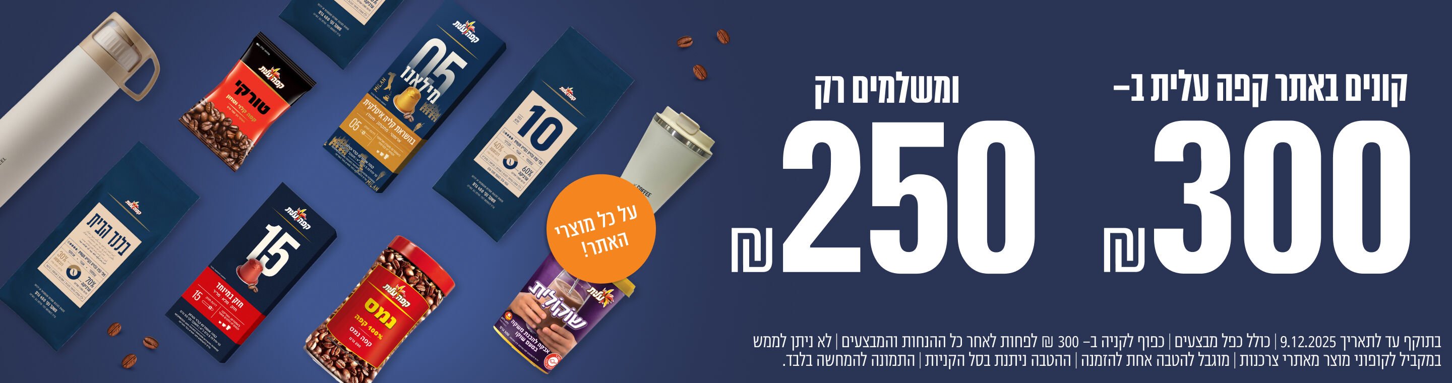 הניוזלטר שלנו רותח ממבצעים בלעדיים והשקות של סוגי קפה חדשים וטעימים. הצטרפו מהר, לפני שיגלוש :)